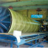 The filament winding process was initiated after World War II. It was first developed for high strength products for government military applications. It was later used starting in the 1960's for industrial corrosion resistant applications such as storage tanks, pipes, natural gas tanks, and automotive parts. Filament winding equipment is commonly found in either mechanically operated designs or computer controlled designs. Most commonly used in industrial pipes are 2 axis winding equipment. More complicated parts require higher axis machines. There are also continuous winding processes available for mass production volume. The raw materials used in the filament winding process are resin (unsaturated resin or epoxy resin), continuous fibers (glass fibers, carbon fibers, KevlarŪ, or ceramic), curing agent, and additives. Fiber content can reach as high as 70 percent of the product. Filament winding is a type of production process in the composites industry that will never be eliminated.